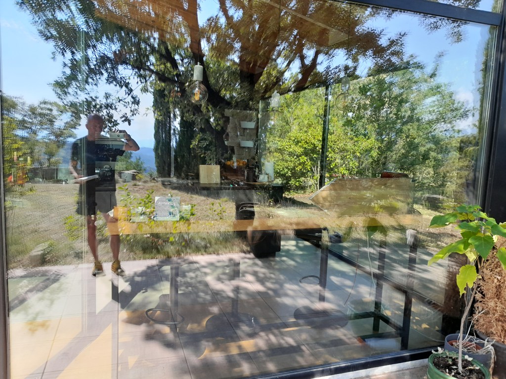 Na een paar uur banjeren en zweten in de verte het dak van de domicilie waar ik naar op weg ben. Met de tong op de knieen de oprit op die nog zeker een kilometer van de weg afvoert. Ik ken oprecht niemand die zo is verstoken van civilisatie. Het kost me alle kennis, ervaring en flexibiliteit om überhaupt hier de voordeur te bereiken.