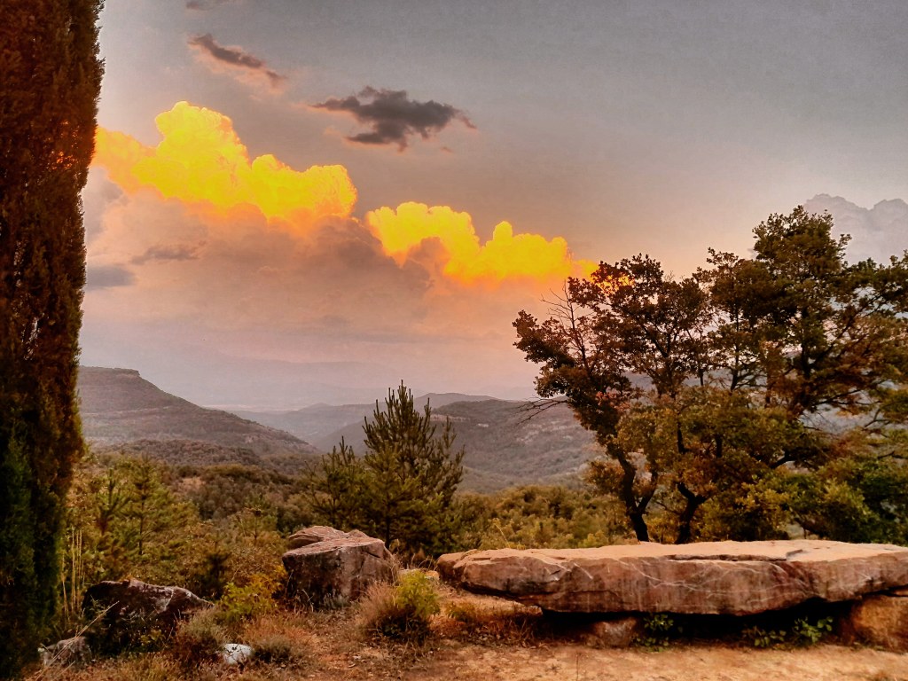 Mijn busrit voert me weg van kusthel Salou naar de stad Huesca. Het is een prachtige rit door Pyreneeën gehuld in oranjerood avondlicht dat langzaam haar kracht verliest. Een busrit door avondrood gebergte; de romantiek van het reizen. Ik schrijf en kijk ogen uit terwijl de bus ronkt en ons met haar stevige motor de hellingen op en af voert. Van mij mag deze rit nog uren duren.