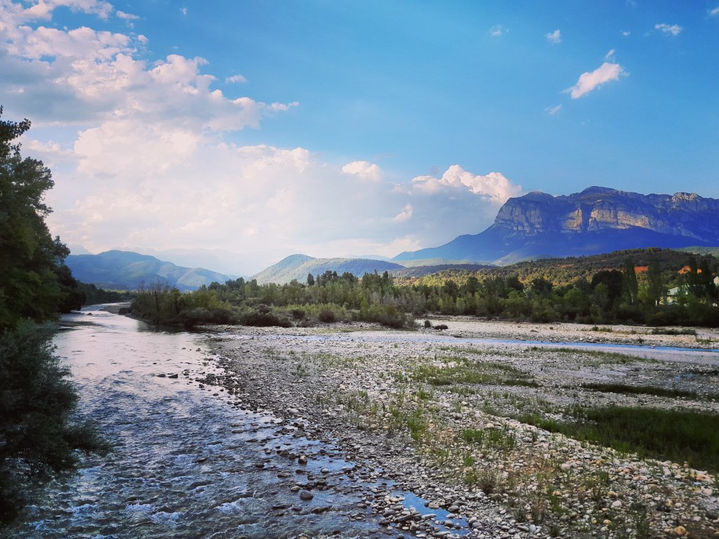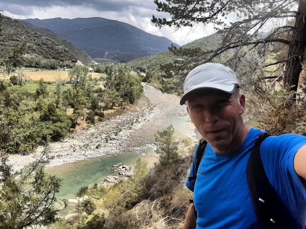 Boltana heeft een heerlijke rivier en het halve dorp heeft er zich in ondergedompeld. Ik niet, ik moet zo nodig trainen en ren een bergpad op naar het gehucht Campodarbe. Het is een killerklim en binnen minuten ben ik doorweekt haarspeldjes aan elkaar aan het rijgen. De single tracks worden gevolgd door boerenwegen met heel, heel veel stenen die je enkels doen kraken. Het lijf houdt zich goed maar ik ben veel te snel door mijn water heen in deze verzengende hitte. Mijn speeksel is als dikke stroop en mijn stem begint over te slaan in een staat van uitdroging. Welkom in de Pyreneeën.