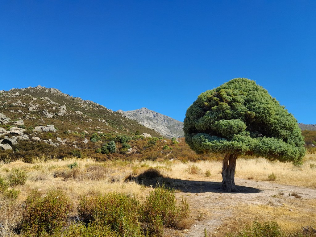 Op de kaart ontwaren we de GR10 die ons vanuit dit dorp via Manzalpino terugvoeren naar Manzanares El Real. We lopen dan eigenlijk om het gebergte heen waar we gisteren overheen trokken.