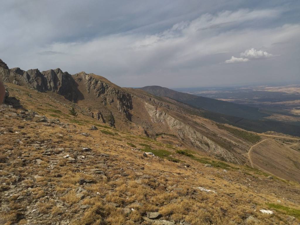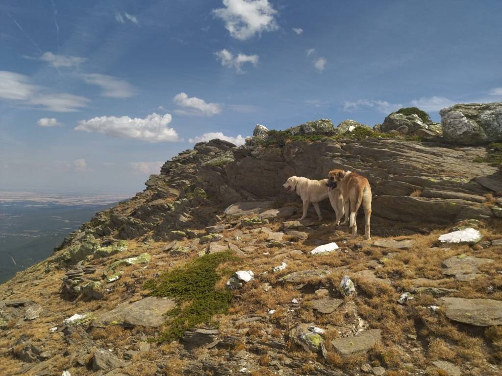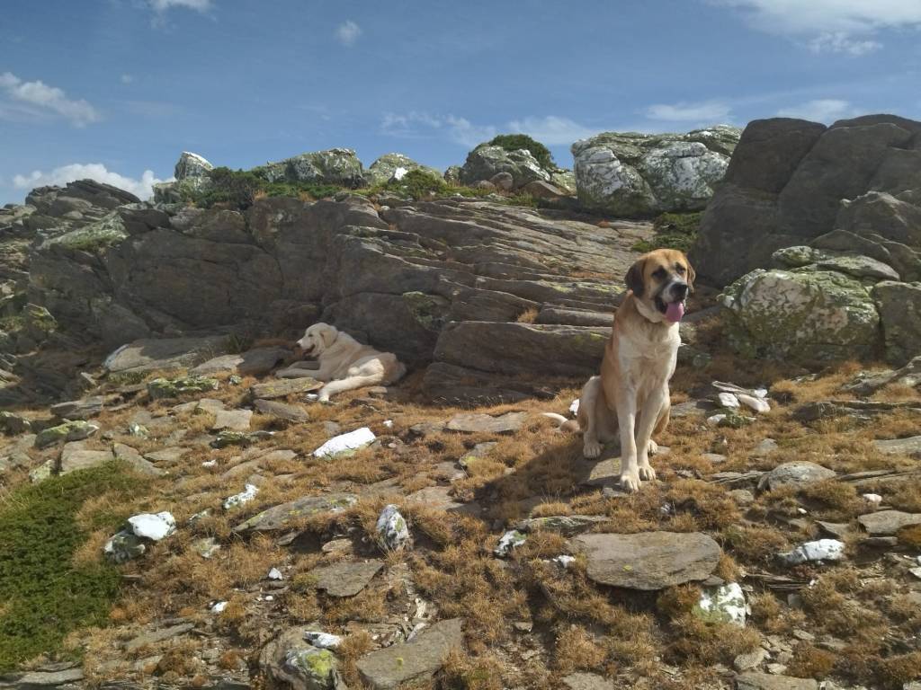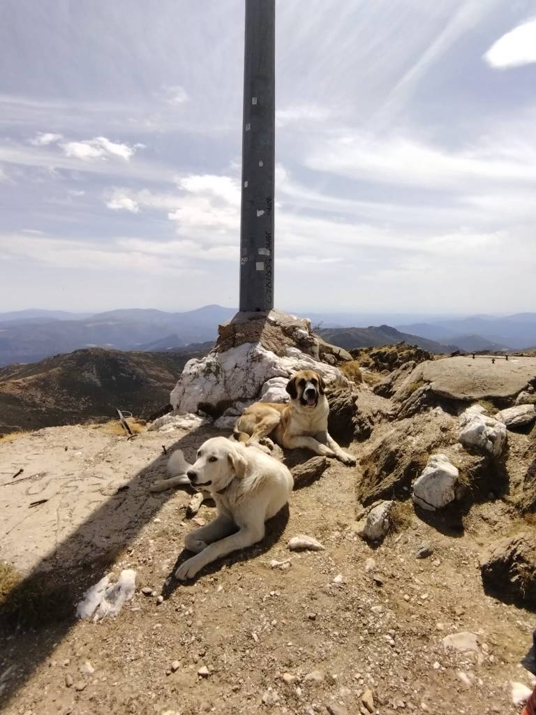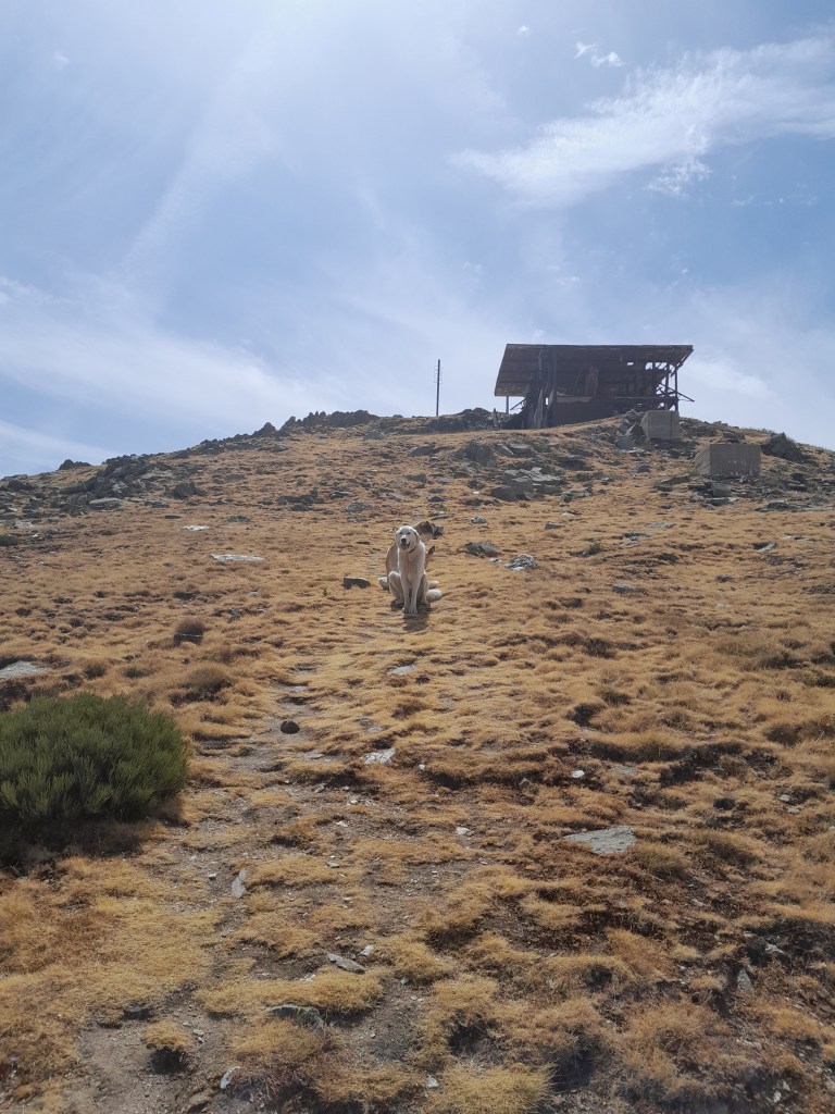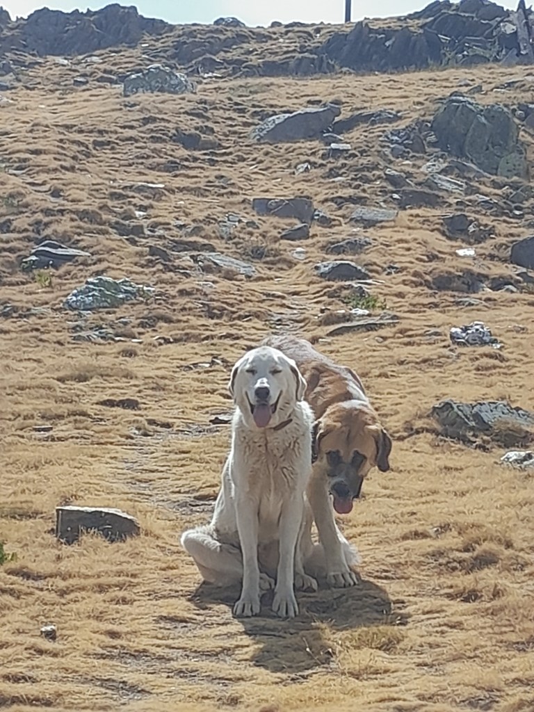 We lunchen kort gezien het naderende onweer. Als we vertrekken volgen de twee lobbussen in ons spoor. Niet omdat we zo leuk zijn maar omdat we ze net een pak salami hebben gevoerd. Wat doen de dieren op de top? Loopt er ergens een herder rond? Zijn het spookhonden die hier rond de top huizen?
