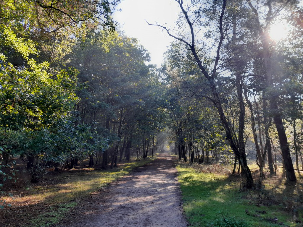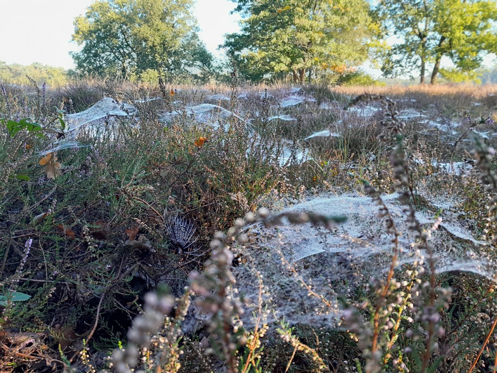 Na onpakken, maak ik een mooie herfstwandeling met een loopmaatje in het Herperduin. Wat is dit toch een prachtig jaargetijde. Overal hebben spinnen naarstig webben gesponnen over de heide die on bloei staat. De waterige ochtendzon breekt door het bladerdak en laat prachtige stralen zien in het vochtige herfstbos. Als je hoofd in de nek gooit, zijn daar de eerste geeltonen die op de bladeren staan. Diep insnuiven doet je glimlachen met herfst in de kop. Het is fris, herfstfris. Krijg spontaan zin om te rennen maar houd me in… morgen mag het. Vorm is een gevaarlijke staat van zijn, je holt je zo overdekop.