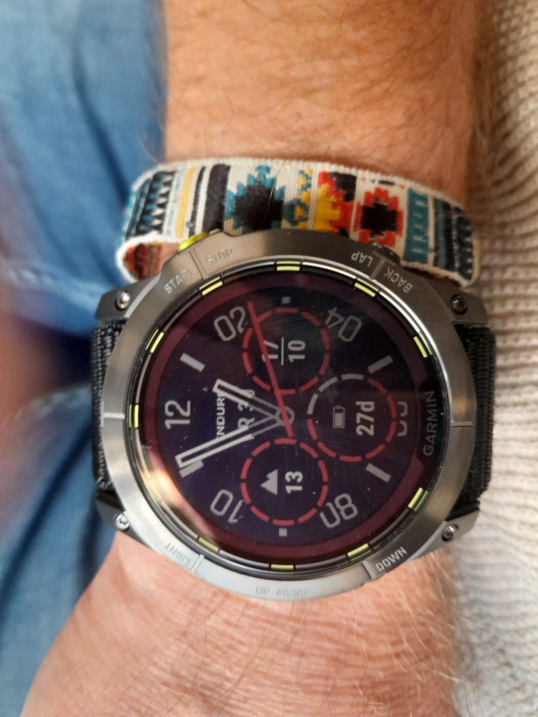 De dag voor de race is vol. In de ochtend mijn gear bij elkaar pakken. Zojuist het sporthorloge van Garmin ontvangen dat ik mag testen, de Garmin Enduro 2 via http://www.Mountainreporters.com. Ik heb altijd een bloedhekel aan het ingegeven van apparaten omdat het altijd misgaat, als je er zo inzit, gaat het dus ook altijd mis conform de wet van de aantrekking…