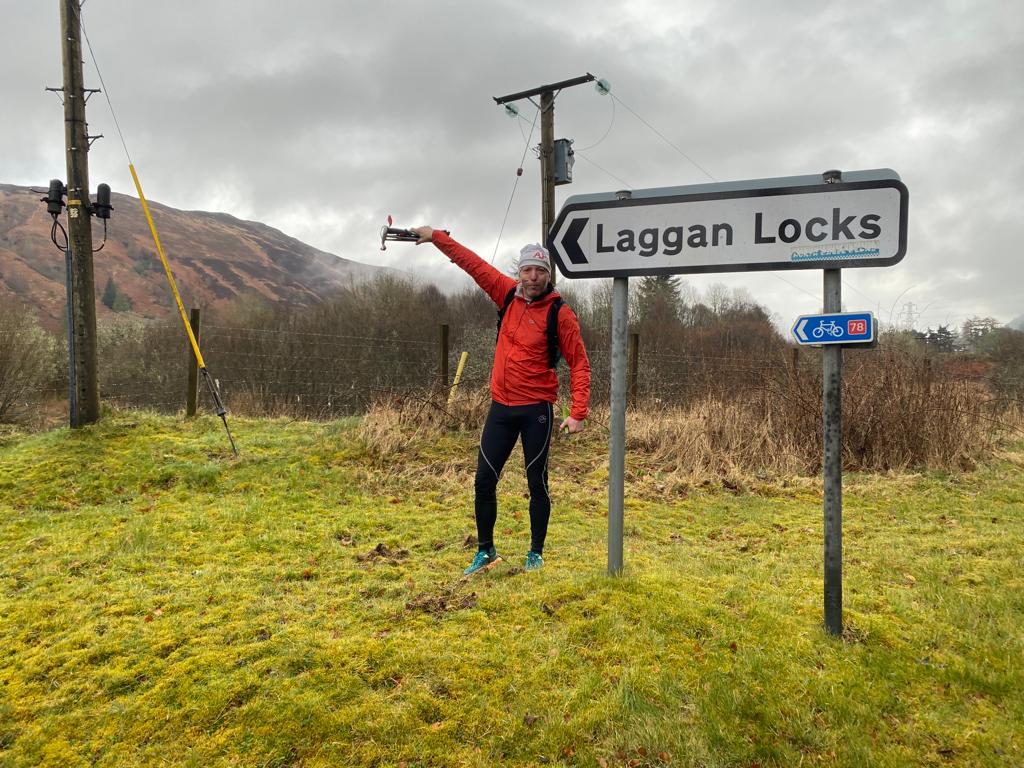 De graat is vlak, een stenenpad door graslanden met in de verte een cairn. Ik kan veel rennen en soms gluur ik links van me het dal in naar Loch Lochy waar ik vanochtend startte. Ik draag de berg op aan Jenny die me deze week steunt en waardoor ik een behouden en gezellige startweek heb. Na enkele topfoto’s gaat het gas nu echt open. Ik daal de 1.230 meter non stop af om na exact 3.42 uur weer op het pad te landen dat langs het meer loopt.