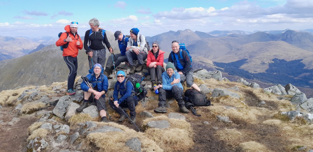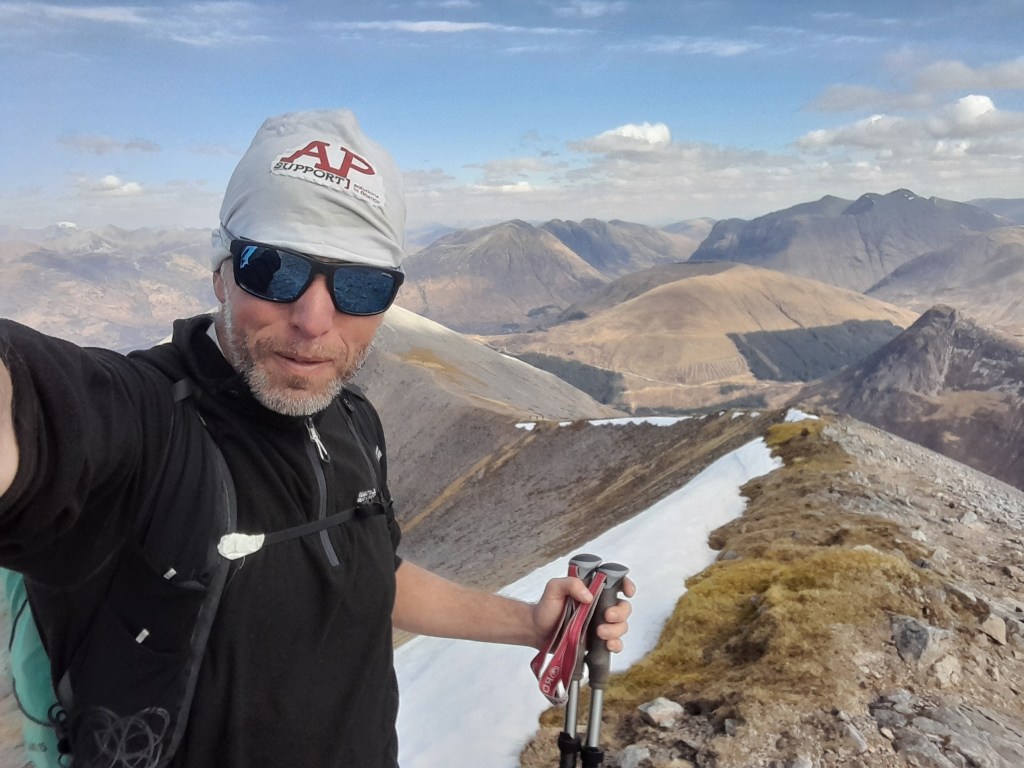 8 april. Dag 12. 23,7k Munro #10 en 11 Beinn a’ Bheithir: Sgorr Dhearg (1.024, rode piek) en Sgorr Dhonuill (1.001, Donalds piek) in the bag.