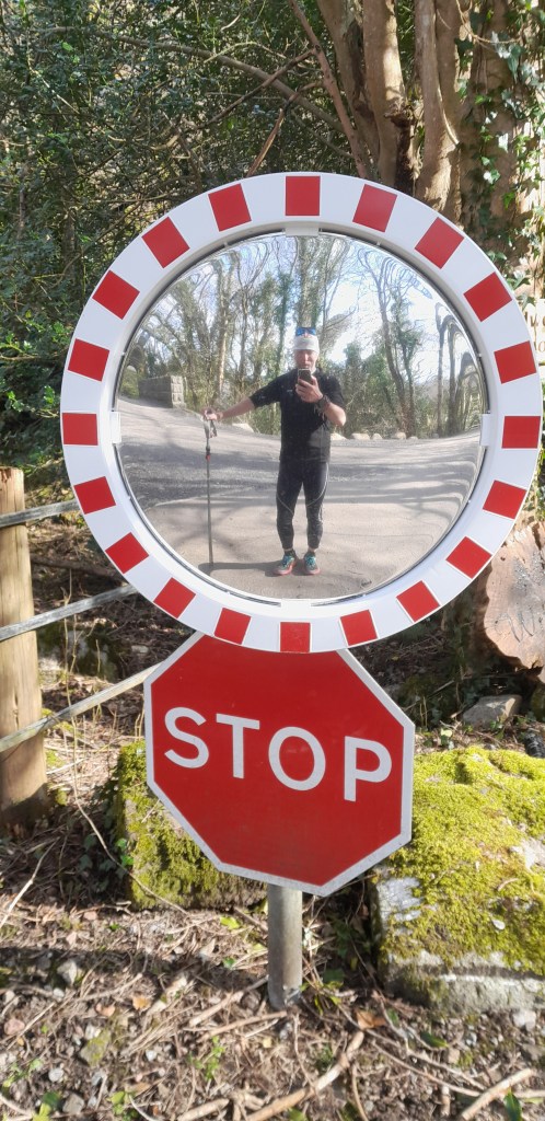 De Ieren gaan kompasstandje rechtdoor want ze hebben vanochtend een grote autodans gedaan en beneden auto’s gezet zodat ze een andere weg terug kunnen. Ik maak rechtsomkeert en ren non stop van 1.001m naar zeeniveau. Het is heerlijk om in cadans je ding te doen en in trance te raken.