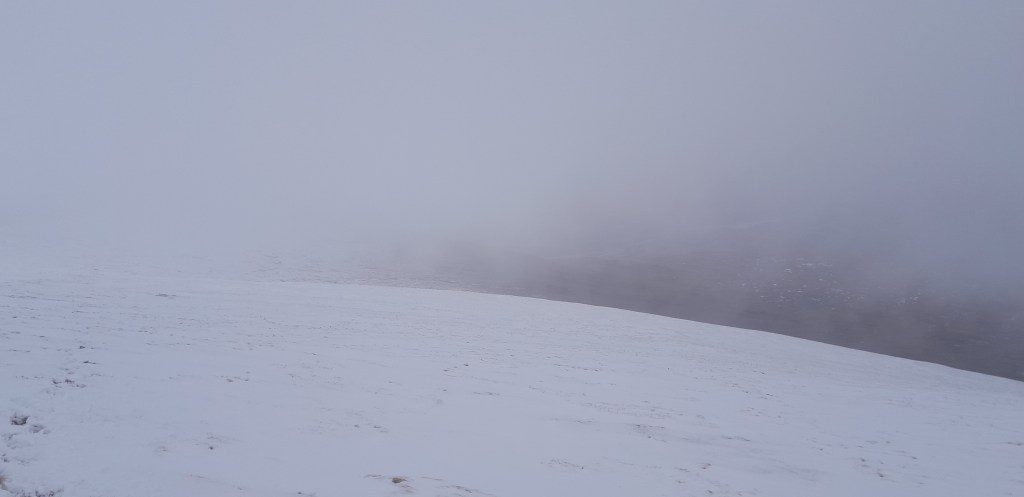 Vandaag zou een makkelijke Munro worden. Toch heeft iedere berg hier zijn eigen verhaal. Dit werd de natste, zompigste klim die ik ooit maakte met een whiteout bij de top die ik alleen in Groenland op de ijskap ooit zo beklemmend ervoer.