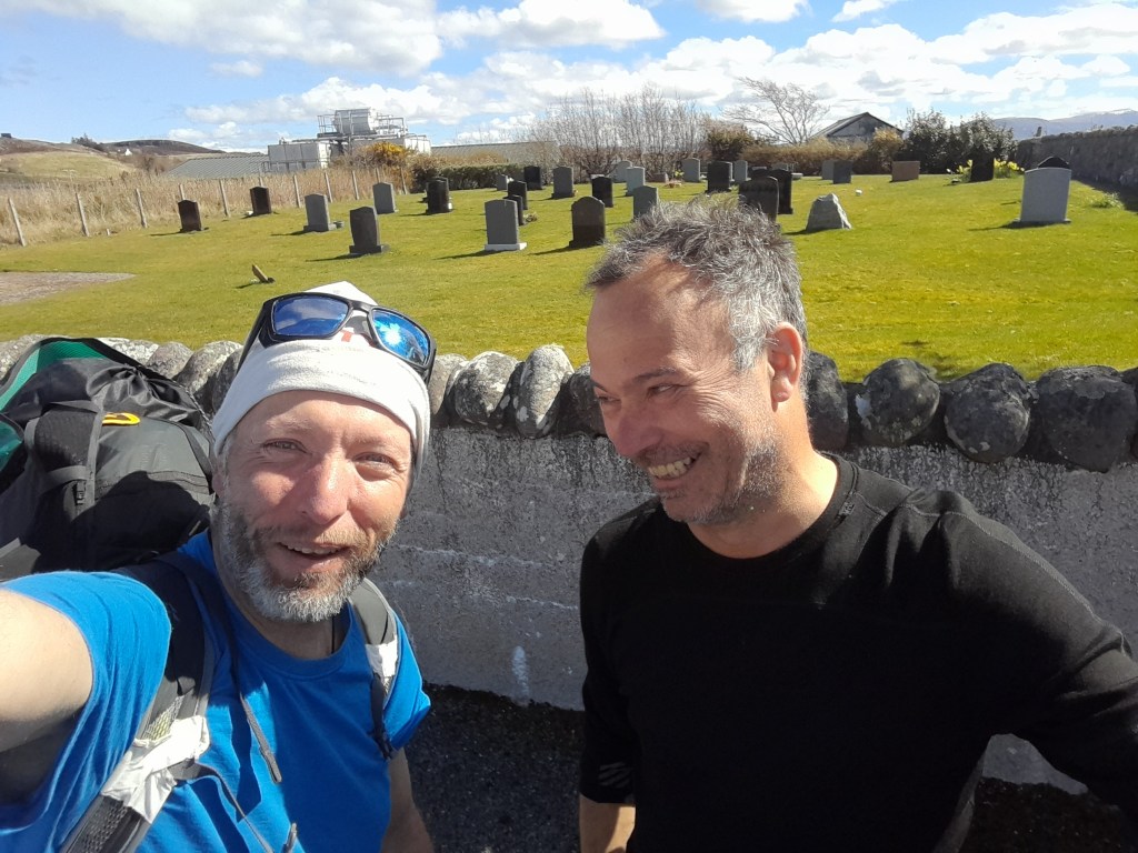 We spreken af samen te gaan klimmen en willen een selfie maken voor zijn vrouw om haar van deze bizarre ontmoeting op de hoogte te stellen. Op het moment dat ik de foto schiet, zie ik in mijn scherm dat we voor een begraafplaats staan. Onze liftafspraak begon voor een begraafplaats. We zijn verbijsterd en hebben beide de slappe lach.