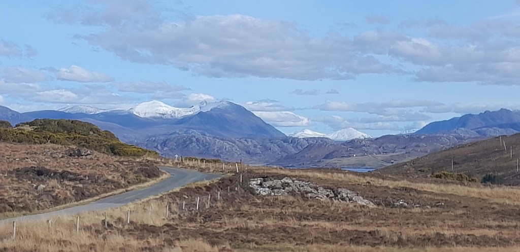 Een gedistingeerde oude man met een onverstaanbare lage stem stopt in een buitengewoon luxe SUV. Ik ben bang dingen vies te maken. Ik stel me altijd meteen netjes voor, zodat er direct een band is. Dan wordt wel snel duidelijk of die ander wil praten of niet. Mijn bestuurder vertelt dat Schotland een beetje op een retirement home begint te lijken. Bijna de helft van de huizen hier wordt opgekocht door vermogende mensen uit Londen die daar hun pand verkopen of hier een tweede huis nemen. De locals kunnen er niet tegenop. Hij wordt er niet vrolijk van. Ook niet van de optocht van campers en motoren die in de zomer een rondje Schotland doet, de North Coast 550, ook wel Schotland ’s Route 66. Het wordt gezien als een van de beste kustroutes ter wereld. Volgens hem kun je hier als local niet meer normaal van a naar b. Hij zet me eruit in Gairloch, een klein kustdorpje waar ik zicht heb op zee, besneeuwde bergen en h7agelwitte zandstranden.