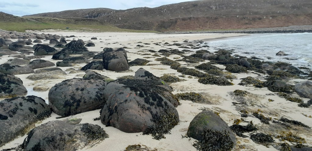 Pas na lang zitten, zijn en genieten, maak ik die foto’s en loop langs de waterlijn. In de avond, nacht en ochtend dat ik er ben, is er niemand anders. Het enige lijntje naar beschaving is de oplichtende oever aan de overzijde als gevolg van een vuurtoren die zijn ding doet. Schotland, wat toon je je vandaag van je mooiste kant! Gisteren nog greep je verlatenheid me naar de strot, nu heb ik een oase in het walhalla gevonden.