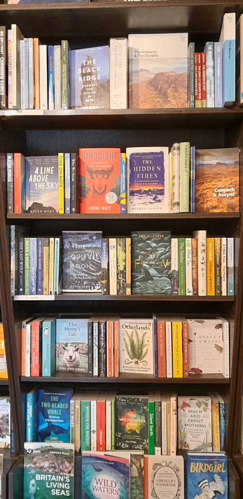 Het blijkt maar 100 meter te zijn van mijn pub The Arch Inn. Aansluitend aan de bar hebben ze een boekhandel. Ik struin er doorheen en druip kwijlend af. Ik wil hier ieder klimboek, reisboek, Munroboek kopen. Wat een rijkdom vergeleken met de top 60 bij de Bruna en AKO. Er is één hele kast die ik zo onder mijn arm zou meenemen.