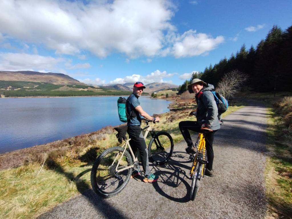 Vandaag gaan de fietsen op het dak en rijden we het eerste stuk met de auto naar wederom twee bijzonder afgelegen Munro’s. We parkeren op de smalle Nweg. Er zijn verder nergens parkeerplaatsen of voorzieningen. Dan nemen we een dirtroad en begint de pijnlijke exercitie naar de voet van de berg.
