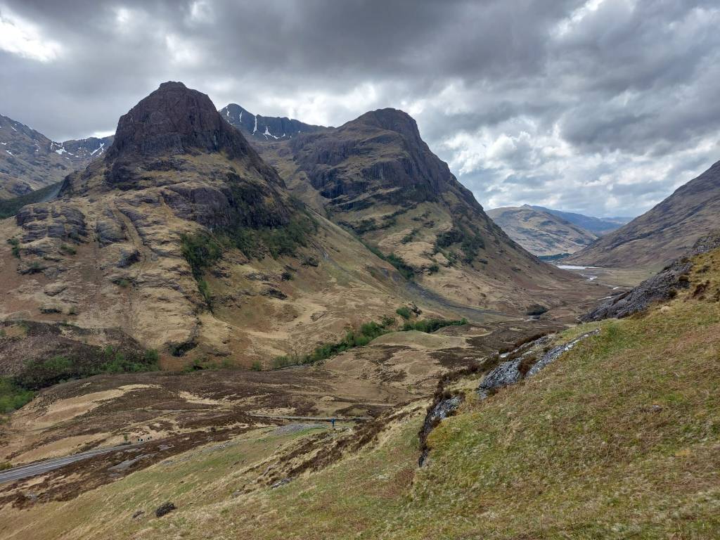 We starten onze klim iets verder richting het dorp richting the Pap of Glencoe. Dit is een markante rotspunt boven het dorp van 742 meter die ik drie keer eerder beklom. De berg heeft voor mij geen enkele betekenis en is alleen maar extra werk. Het is geen Munro, zelfs geen Corbett, maar ach, als we er dan toch zijn, laten we hem niet links liggen. We winnen snel hoogte en zien Glencoe en Loch Leven snel in de diepte kleiner worden.