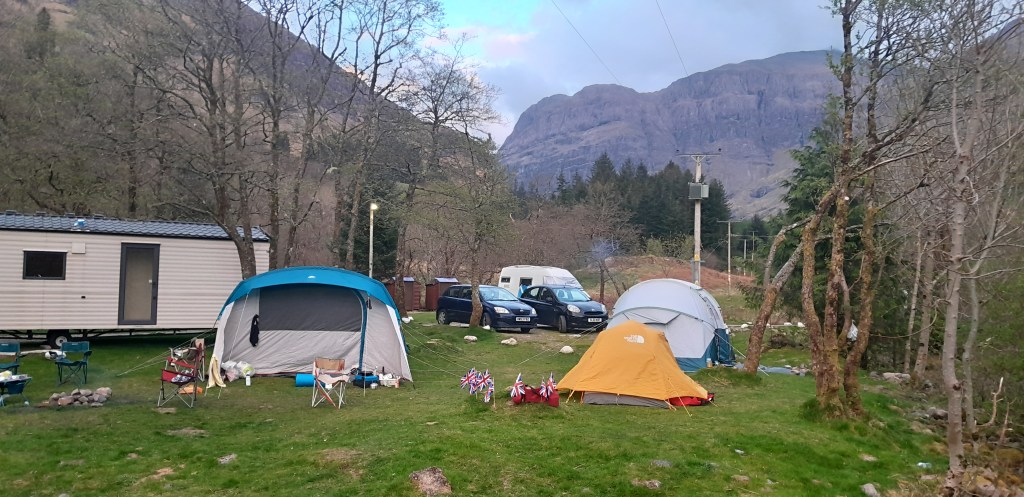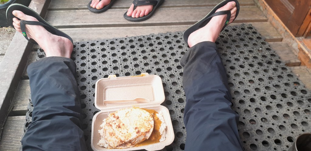 We slenteren naar de eetwagen voor een emmer koffie. Christian gaat voor een full breakfast en ik een bacon and egg role, een broodje. Vandaag staat de Aonach Eagach-graat op het programma, zeg maar de meest gevreesde graat van de UK. De donkergrijze luchten en windvlagen maken dat we dat idee voor vandaag laten varen.
