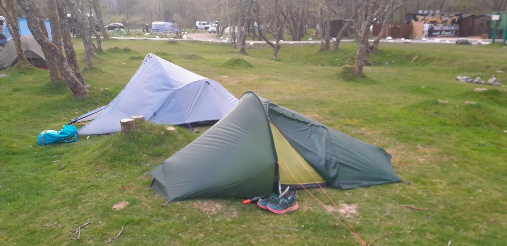 Op de camping verzamelen we onze spullen. Mijn degelijke waterdichte sokken ruiken ver-schrik-ke-lijk. Al dagen ren ik erop rond. Spoelen helpt niet want na een dag op natte voeten ben je weer bij af. Het is ronduit weerzinwekkend en ik moet er zelf bijna van kokhalzen.