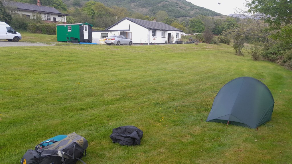 Ik informeer of ik met mijn tentje op de kleine camping mag staan maar dat weten ze niet. De camping wordt gerund door Jim en Gil. Als ik aankom bij de receptie groet ik Gil alsof ik haar al tien jaar ken. Ze wordt helemaal enthousiast als ze hoort dat ik de camping als basiskamp wil gebruiken voor een aantal Munro’s. Tot haar spijt mag ik niet met mijn tent op de camping staan, daar heeft ze geen licentie voor. Gelukkig mag ik gewoon bij haar in de tuin staan. En aldus sta ik vijf nachten bij Gil in de tuin en mag ik de faciliteiten van de camping gebruiken. Van betalen, wil ze niks weten. De tuin is overigens zo groot dat ik Gil de komende dagen waarschijnlijk niet zie…
