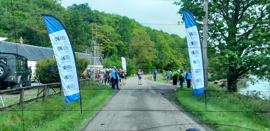 Ik geloof erg in mooie concepten als selectieve perceptie, serendipiteit, absolute synchroniciteit en de wet van de aantrekking. Als we tien minuten op pad zijn een bord ‘runners in the road’. Het ‘in’ doet vermoeden dat er oneffenheden in de weg zijn. Niets is minder waar. We staan opeens, op tien minuten van de caravan, middenin het startveld van de Cape Wrath Ultra, een zevendaagse multi stage race die van Fort Wiliam naar Cape Wrath in het noorden voert. Het is een race die al jaren op mijn bucketlist staat en ik overwoog zelfs ze aan te schrijven en hem mee te pakken tijdens deze missie. Je kunt echter met 282 bergen op je pad ook overdrijven, ik pak het grootste deel van deze trail al mee in mijn omzwervingen. Leuk om tientallen tot de tanden bewapende trailrunners in racetenue te ontwaren in het zicht van onze caravan.