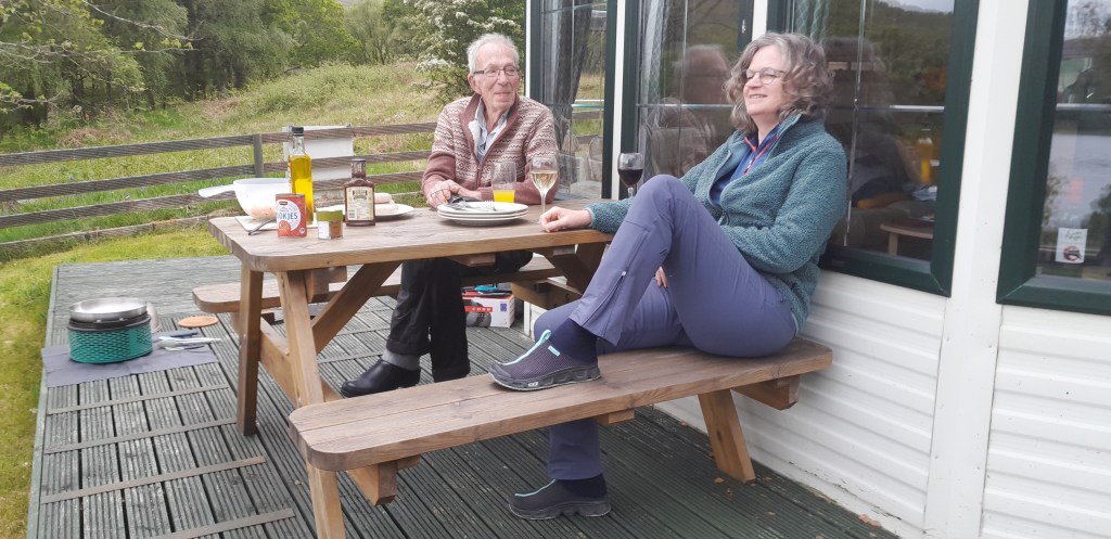 Midges zijn feitelijk fruitvliegjes met slagtanden. Ze doen geen kwaad behalve dat ze bloedirritant zijn, gruwelijk veel jeuk veroorzaken en nooit alleen komen, maar met een miljoen. De een is er ontvankelijker voor dan de ander. Ze veroorzaken bij mij allemaal bobbeltjes op mijn toch al markante kop. Voornamelijk achter de oren weten ze me te pakken. Een nauwsluitende muts helpt. Nu ben ik mijn mutsje verloren en weet vriendin van vaders gelukkig een bijzonder goed sluitende zwarte RAB-muts voor me op de kop te tikken. Ze maken me in ieder geval een nog markanter mensch. In deze caravan kan ik eraan ontsnappen maar de komende weken in de tent is dat onmogelijk. Een appartement of hotelletje boeken is financieel onmogelijk en ik heb ermee te dealen. Een extra uitdaging.
