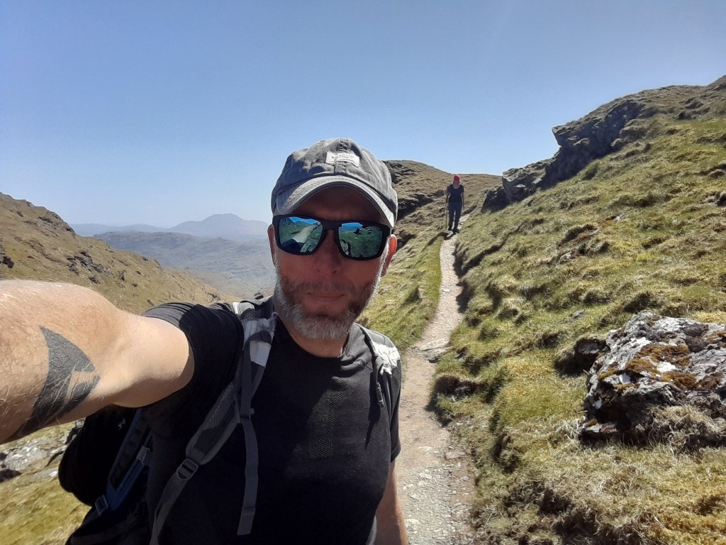 Wederom constateer ik dat elke berg zijn verhaal heeft. Regen, wind, zicht, mist, sneeuw, storm… deze berg staat in het teken van lieflijk ook al is de bijnaam hill of the hawk. De bergen zijn hier geler ten opzichte van het zwart in Glencoe en ronder en dus beter begaanbaar. Deze berg doet een beetje aan als Fonzie uit de muppetshow, de aimabele bruine beer.