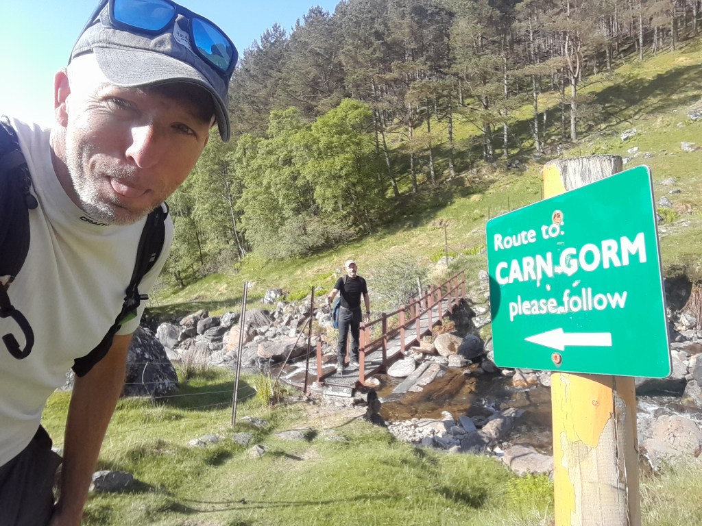 De aanloopklim is stijl en verwonderend gluren we om om heen met de vraag welke pukkels nou exact de Munro’s zijn. Soms is dat al lastig te bepalen bij daglicht, laat staan in de wolken.