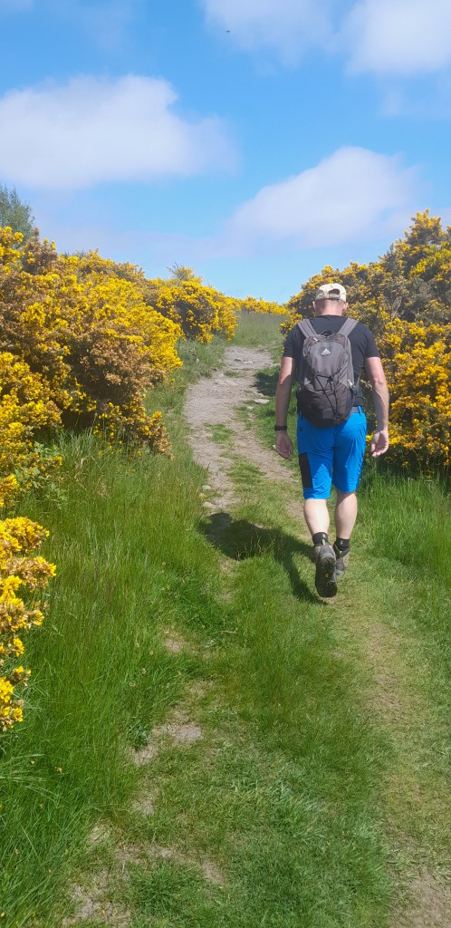 We klimmen direct stevig en laten de geweldige glen onder ons. Een single track langs oude muurtjes en vaak door een cordon van gele gorse. Links en rechts zo nu en zo dan een cottage. Schapen en hun lammetjes doen hun ding en geven het gevoel dat het hier altijd zo gaat, dat de tijd hier stilstaat. We klimmen 280 meter en dat is iets meer dan we voor ogen hadden op deze tutdag. Halverwege dat aarzelmoment: we moeten dit ook allemaal weer terug. Toch zetten we door, we zijn echte mannen.