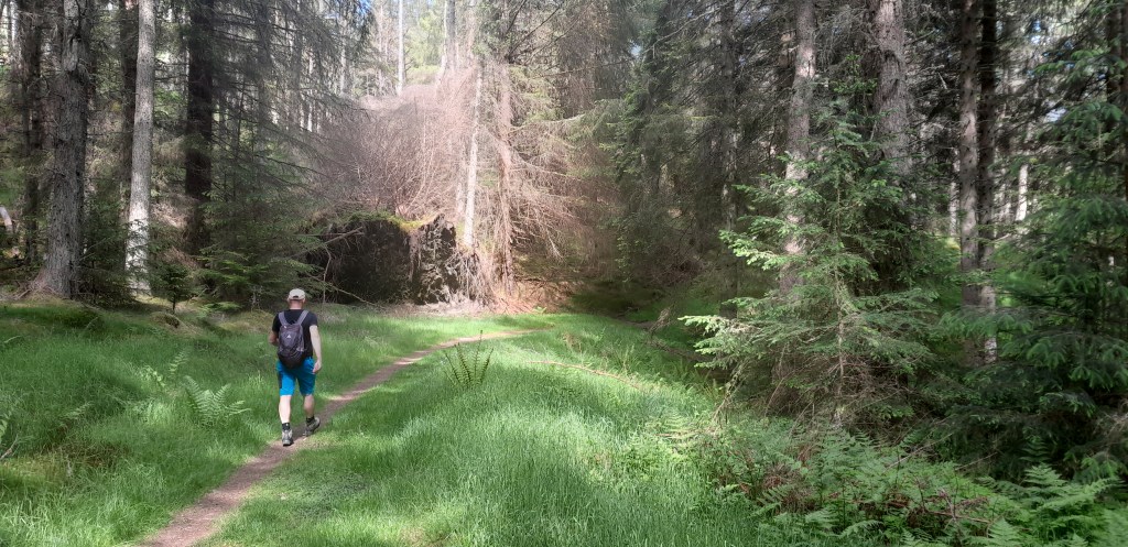 Halverwege de dag opper ik een stuk van de Rob Roy Way te lopen, dit keer niet richting Aberfeldy, maar de andere kant uit naar Pitlochry. Eerder maakte ik een liftfout en moest om de berg terug naar de camping liften. Nu lopen we rechtstreeks over de berg 5,5 mijl naar Pitlochry.