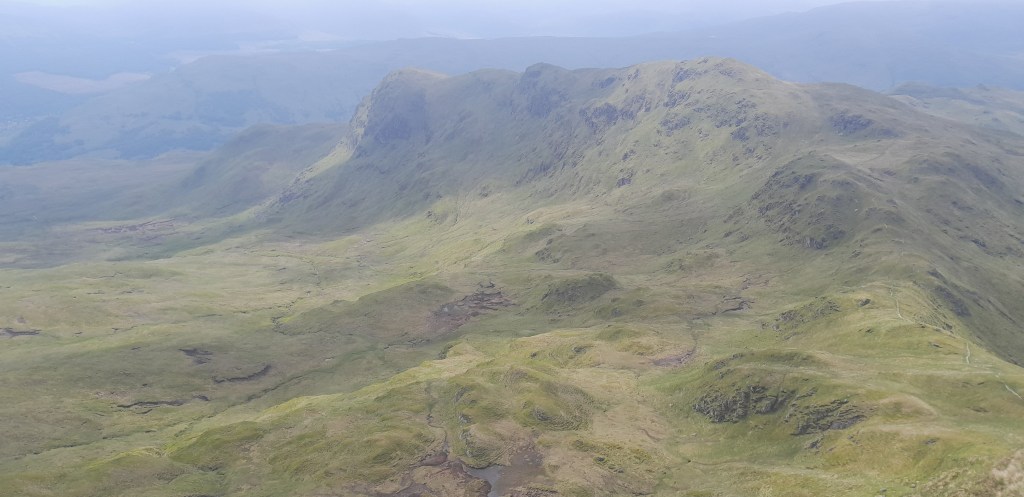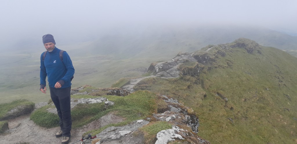 Deze Munro staat heel goed aangeschreven en via meerdere topjes loop je over een mooie graat een hoefijzer om door het dal terug te steken naar de parking.