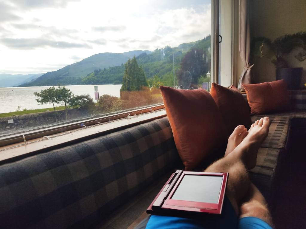 Ik slenter door Fort William als een app krijg van Carlo met de vraag wat biertjes voor vanavond te regelen voor na hun vlucht. Ze landen om 22.15. Aldus haal ik bij de Tesco 2×4 halve liters bier waarna ik half Schotland moet doorliften met een racepack vol drank. That’s a first. Misschien een trein? Ik loop even het station binnen en zoek in de automaat. Een enkeltje Fort William naar Inverness is 144 Pond. Toch maar even navragen bij het loket. ‘Yes you have to travel back to Glasgow in the Southwest and then up again. We did not have enough dynamite to clear a track…’. Niet bij stilgestaan. Ik zeg dat ik ga liften. Hij vindt dat een goed plan.