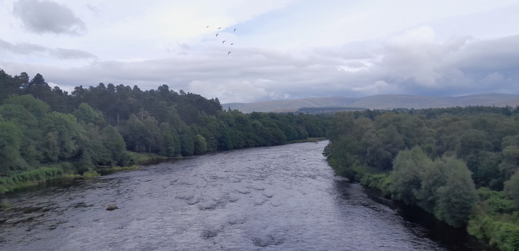 Na twee uur ben ik er wel klaar mee. Sommige dagen lukt het gewoon niet al gebeurt dat maar zelden. Ik slenter terug, de brug over waar de river Spey onderdoor stroomt. Hij is hier, verder richting kust, een stuk breder dan waar ik eerder SUPtte.