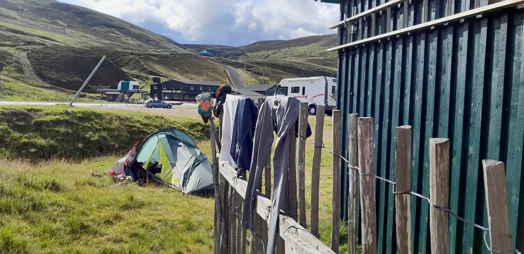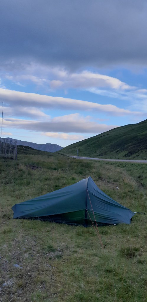 Stram. Dat is het woord dat mijn fysique omschrijft na een waterkoude nacht en drie snelle Munro’s gisterenavond. Ik blijf dan ook iets langer liggen tot de zon me uit de tent brandt, even twee warme uurtjes sudderen.