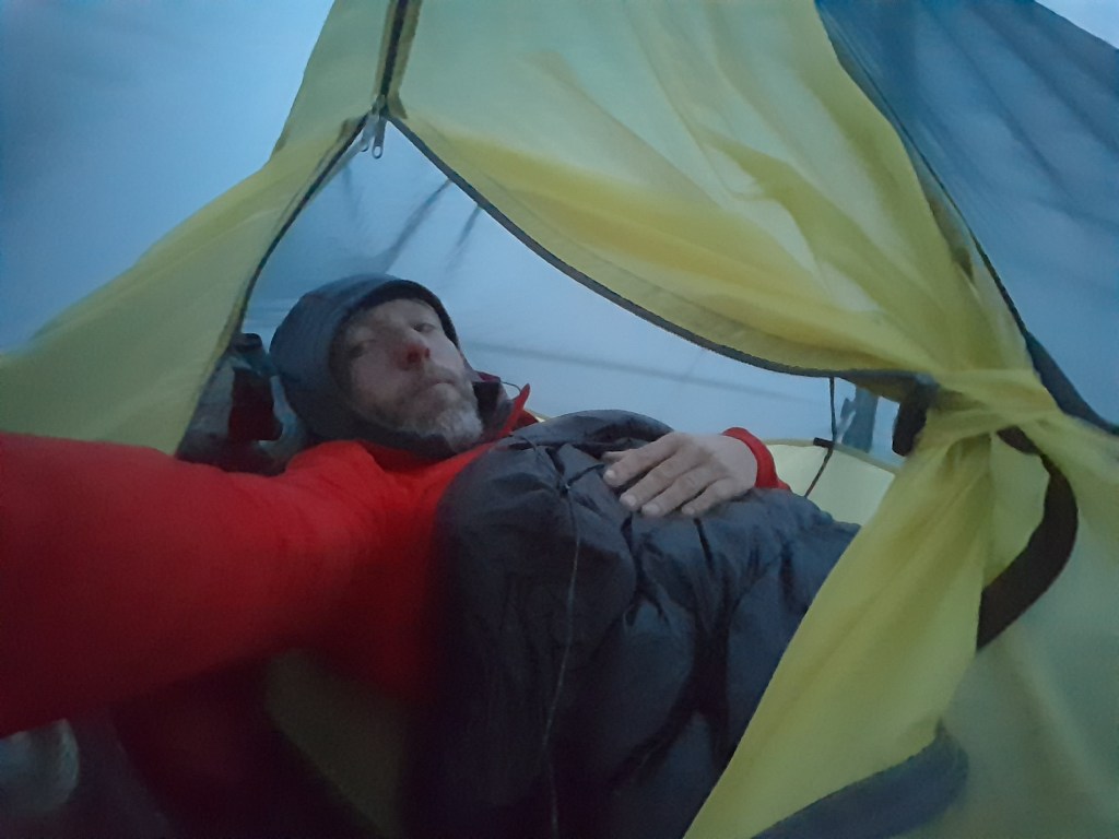 Met al mijn kleren aan was de nacht iets comfortabeler. Heel warm was het niet. Het maakt dat ik al om acht uur wakker ben. Ik draai me nog één keer om en laat de ochtendzon haar werk doen. Dan pak ik de boel op. Het past zo makkelijk in de rugzak dat ik het gevoel heb dat een deel van mijn uitrusting gestolen is. Ik heb echter de afgelopen dagen zeker 10 ontbijtjes en 10 maaltijden weggewerkt en dat scheelt veel.
