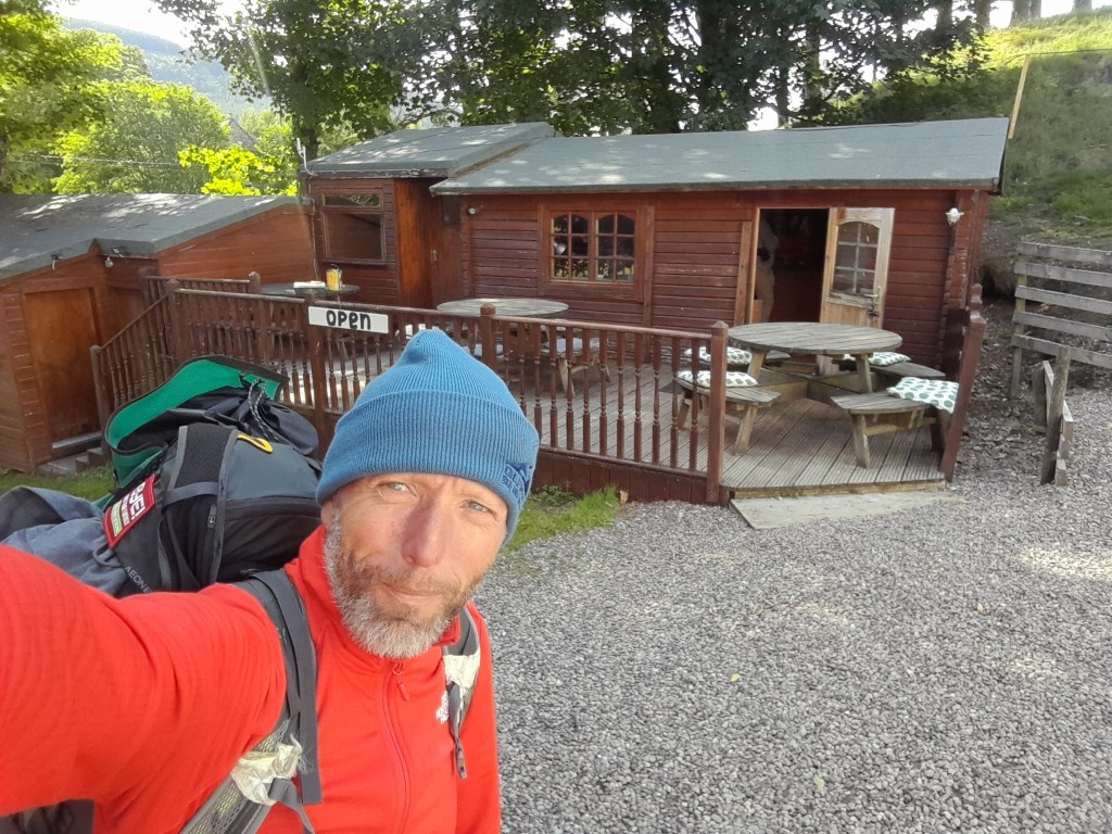 Als ze vragen wat ik hier doe en zeg dat ik inmiddels 104 Munro’s heb afgetikt, krijg ik mijn portie bewondering. Als ik voorheen zei 30 dan gebeurde er niks maar inmiddels begint het ergens op te lijken. Ze vragen of ik van Jamie en haar rondje van 31 dagen heb gehoord. Uiteraard, en ik vertel dat het liftend en zonder supportteam mij iets meer tijd kost. Daar weten ze wel een oplossing voor: Als wij nou je supportteam zijn en beneden wijn drinken, dan kan jij mooi rennen. Briljant!