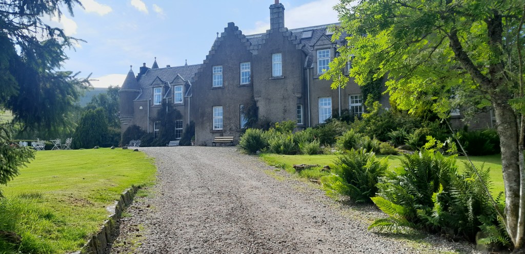Na een half uur tref ik Dalmunzie House Hotel, een kasteel met daaromheen oude sparren en een golfbaan. Ik slenter naar binnen en mag een biertje drinken in de immense lounge waar hertenkoppen uit de muur steken en grote Chesterfields de gasten comfort bieden.