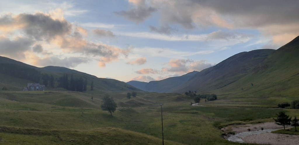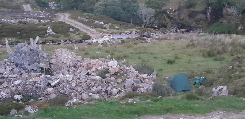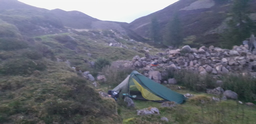 Om exact 22.22 uur staat mijn tent en lig ik in mijn slaapzak mijn potje te koken terwijl ik uitkijk over de vallei waardoor ik net ben komen aanlopen. Dit is een prachtige plek, diep in de vallei zodat de aanklim naar de volgende drie Munro’s morgen niet al te lang is.