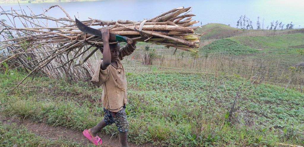 Als je een korte toiletstop wilt maken, is het constant opletten dat er niet uit de struiken een verwonderd kind opduikt met grote witte ogen die je aanstaren. Nergens vinden we in dit rurale gebied een plek waar we alleen zijn. Dat verandert pas de volgende dag als we in steiler terrein langs het meer trekken, terrein dat zich niet leent voor landbouw.