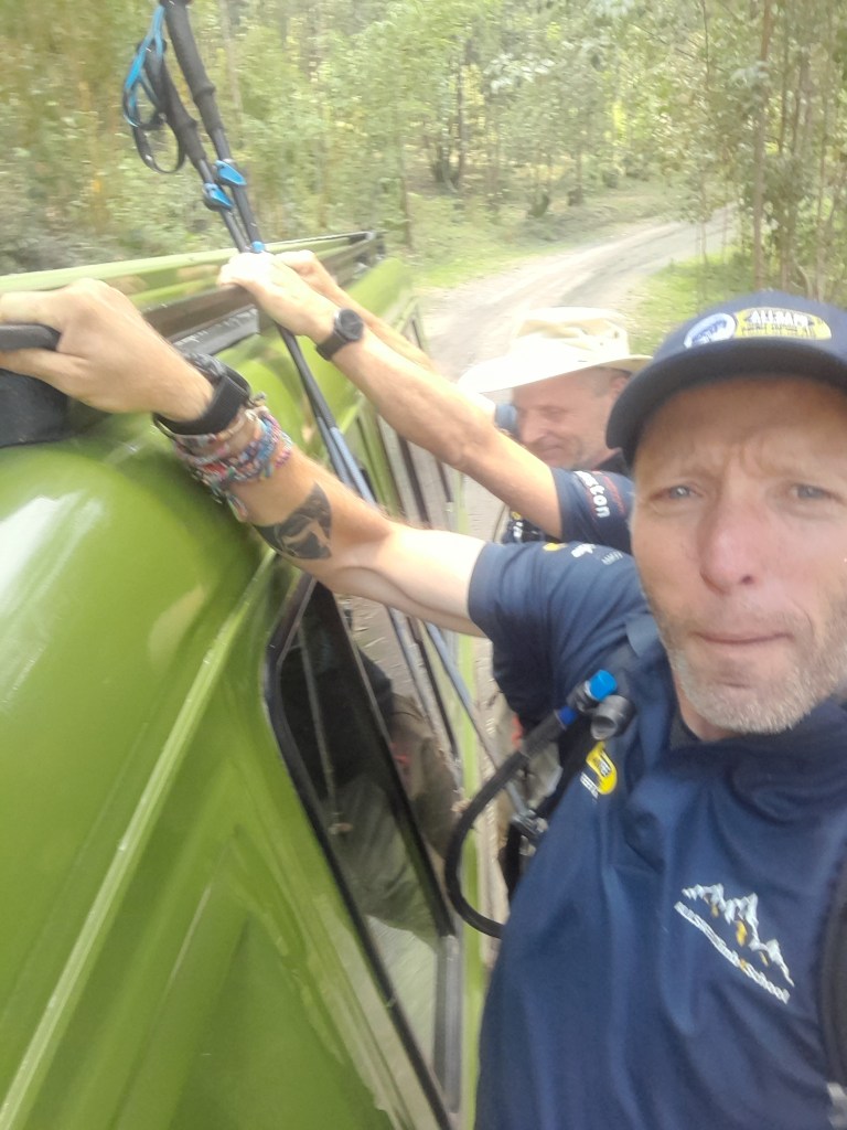 Gerard beklimt vandaag zijn Mount Everest en komt zich in de laatste klimmen meermaals tegen. Ondanks enige krachttermen ploetert hij voort. Na 23 kilometer doemen dan eindelijk aan de horizon de terreinwagens op in Ishanga die verlichting bieden. Deze dag had alles in zich om er nu reeds een onvergetelijke excersitie van te maken.