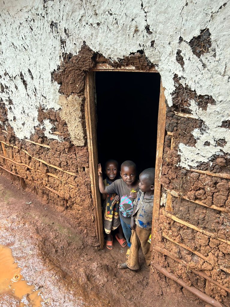 Ik sta in een halletje met vier kleine jongens op slippers die naar me staren. Achter me een zogende moeder met een prachtig klein kind op de borst, zittend op een jerrycan. Naast me een kamertje waar een oude man en oude vrouw op een bankje bijeen zitten. In het andere kamertje van twee vierkante meter zitten vijf deelnemers van onze groep bijeen op houten bankjes te lunchen.