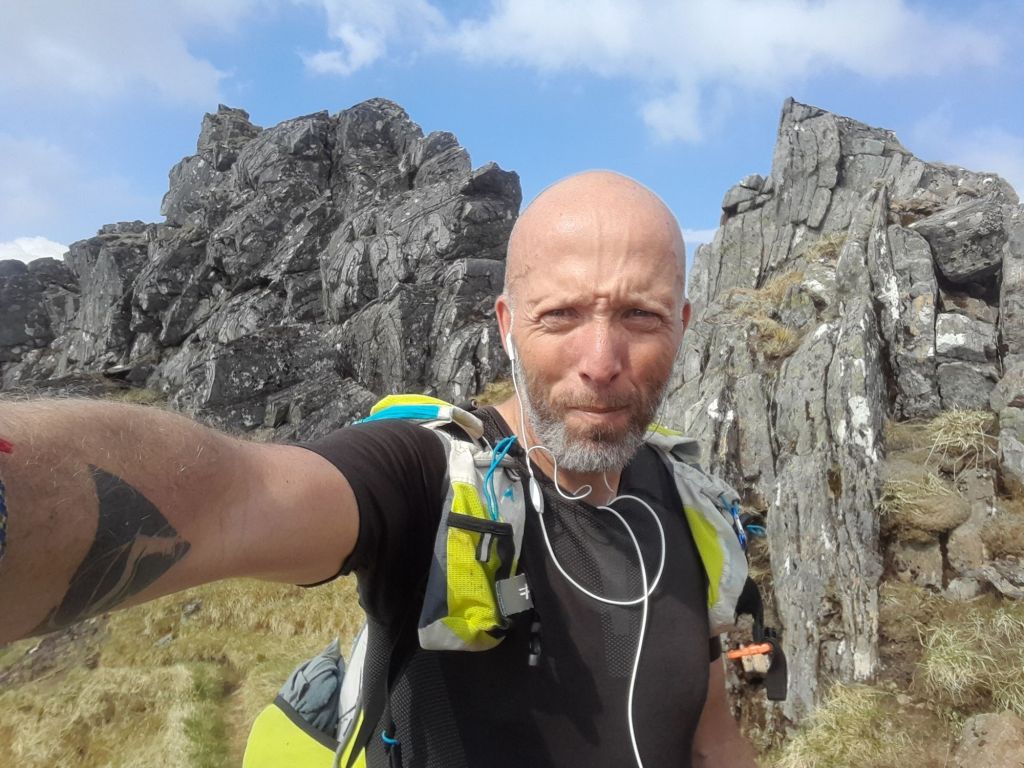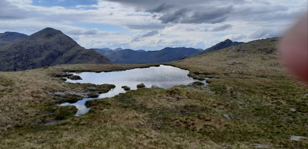 Op de eerste top neem ik een kwartier om mijzelf bijeen te rapen. De top illustreert net haar tongbrekende naam A’ Chralaig mijn krakende staat van zijn. Gelukkig is de graat die naar de tweede top leidt relatief eenvoudig met weinig verval.