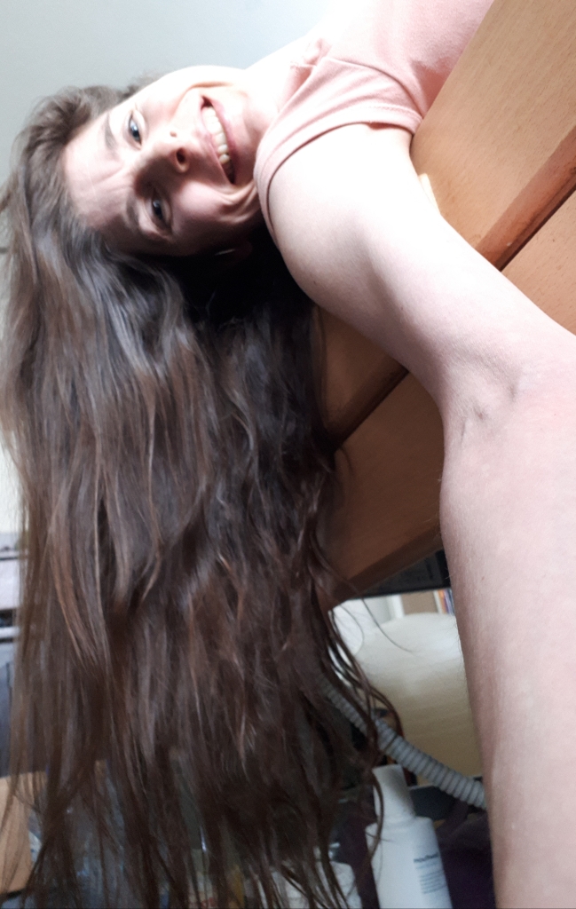 Hie mooi is het dat ze vandaag weer met een berichtje op mijn tijdlijn komt omdat ze voor de tweede keer haar lange bos haar afstaat voor mensen die een pruik nodig hebben. Ze doneert haar.