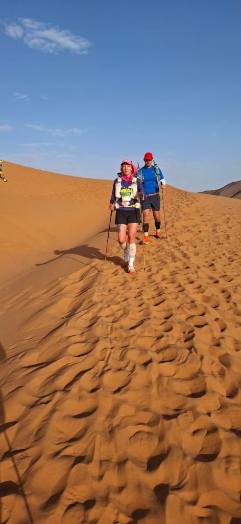 Zeshonderd vrijwilligers maken deze race mogelijk. Een van de ‘blue jackets’ laat me zijn handen zien: totaal gebarsten door de droogte, zijn handpalmen vol sneden van het openen van duizenden waterflessen. Zodat wij bij elk checkpoint direct water in onze bidons krijgen.