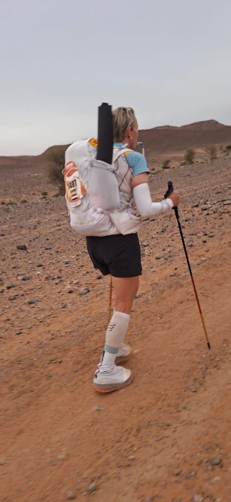 In onze lage berbertent vraagt iedereen meteen hoe het ging. Ik kruip op mijn halve foam matje en maak een nieuwe bidon met een bouillonblokje. Elke deelnemer moet er veertien meenemen.