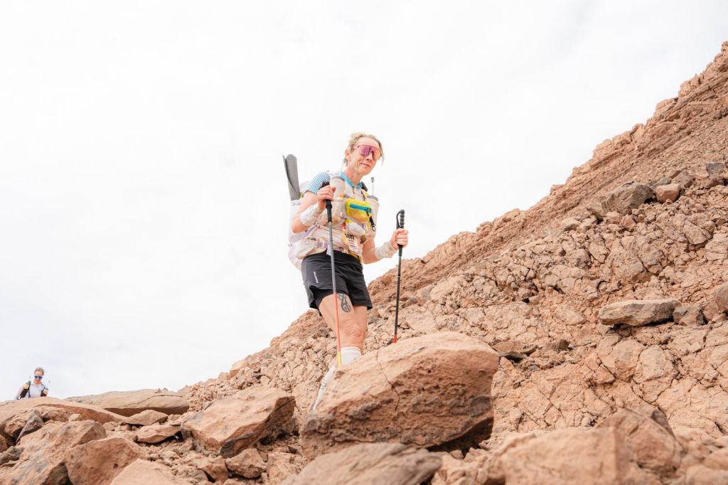 Sommigen stappen na zo’n stage uit. Anderen komen elke keer net op tijd binnen en starten weer. Zelfs na een binnenkomst bij de long stage om acht uur ’s avonds, als we de volgende dag om 6:30 uur in de ochtend weer starten voor de 42k. Maar zij geeft aan niet meer te starten.