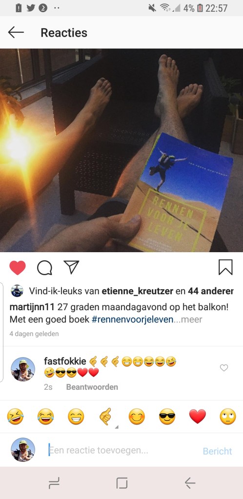 Wat ik aan het doen ben? Voor de 2e maal het boek Rennen voor je Leven lezen van Jan Fokke. Top boek en #leestip!