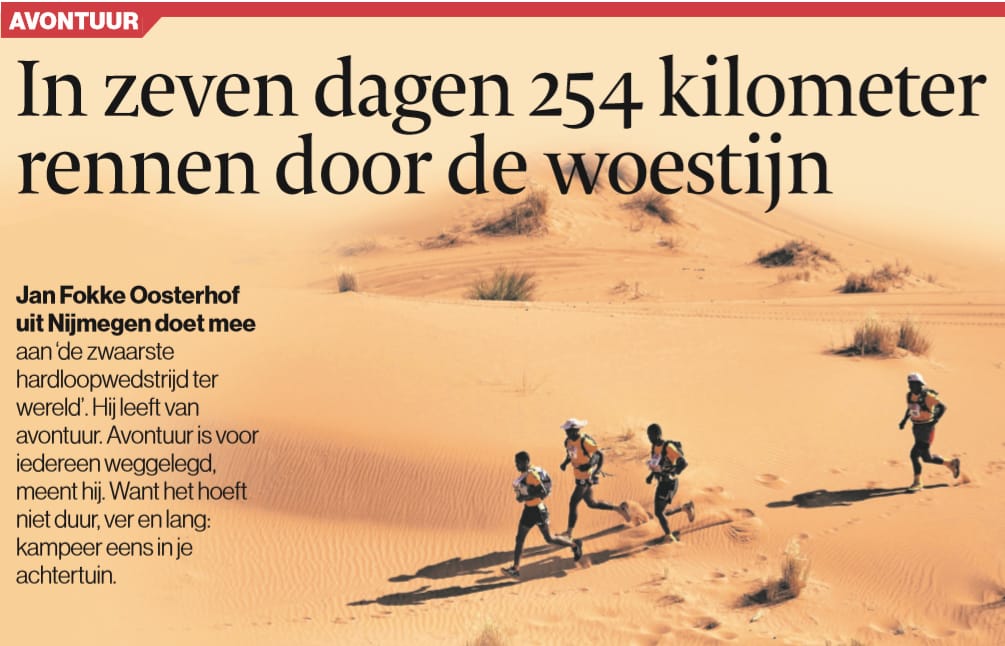 Marathon des Sables: Niet normaal, je gaat toch niet rennen bij 50 graden. Je bent niet goed snik! Heb je professionele hulp gekregen? – Harm Edens in Gelderse Koppen